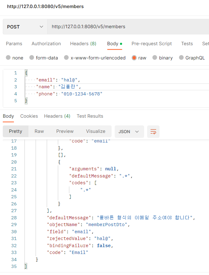 - postMethod(postMember)에서 유효성 검증이 실패 했을때