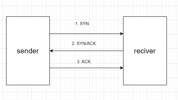 - SYN : 송신자(sender)는 수신자(reciver)와 연결 설정하기 위해, segment를 랜덤으로 설정된 SYN(Synchronize Sequence Number)와 함께 전송 - sender가 reciver에게 통신을 하고싶다고 요청하는것