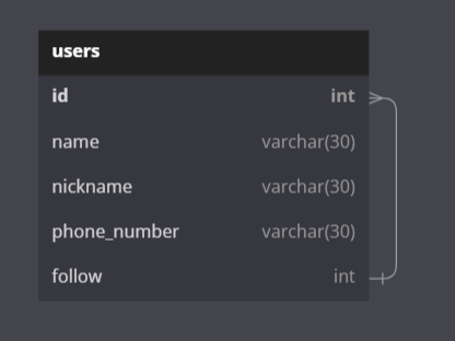 - user는 user들을 팔로우 할 수 있다. 팔로우는 여러명 할수 있다.(N)