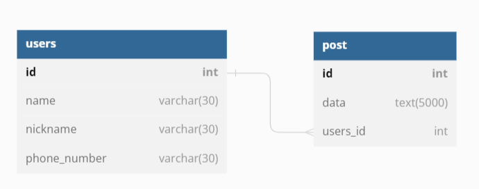 - post(N)에서 users(1)의 레코드(unique한)를 참조키(FK)로 갖는다 (주로 PK(Primary Key)를 참조키(FOREIGN KEY)로 갖는다.)